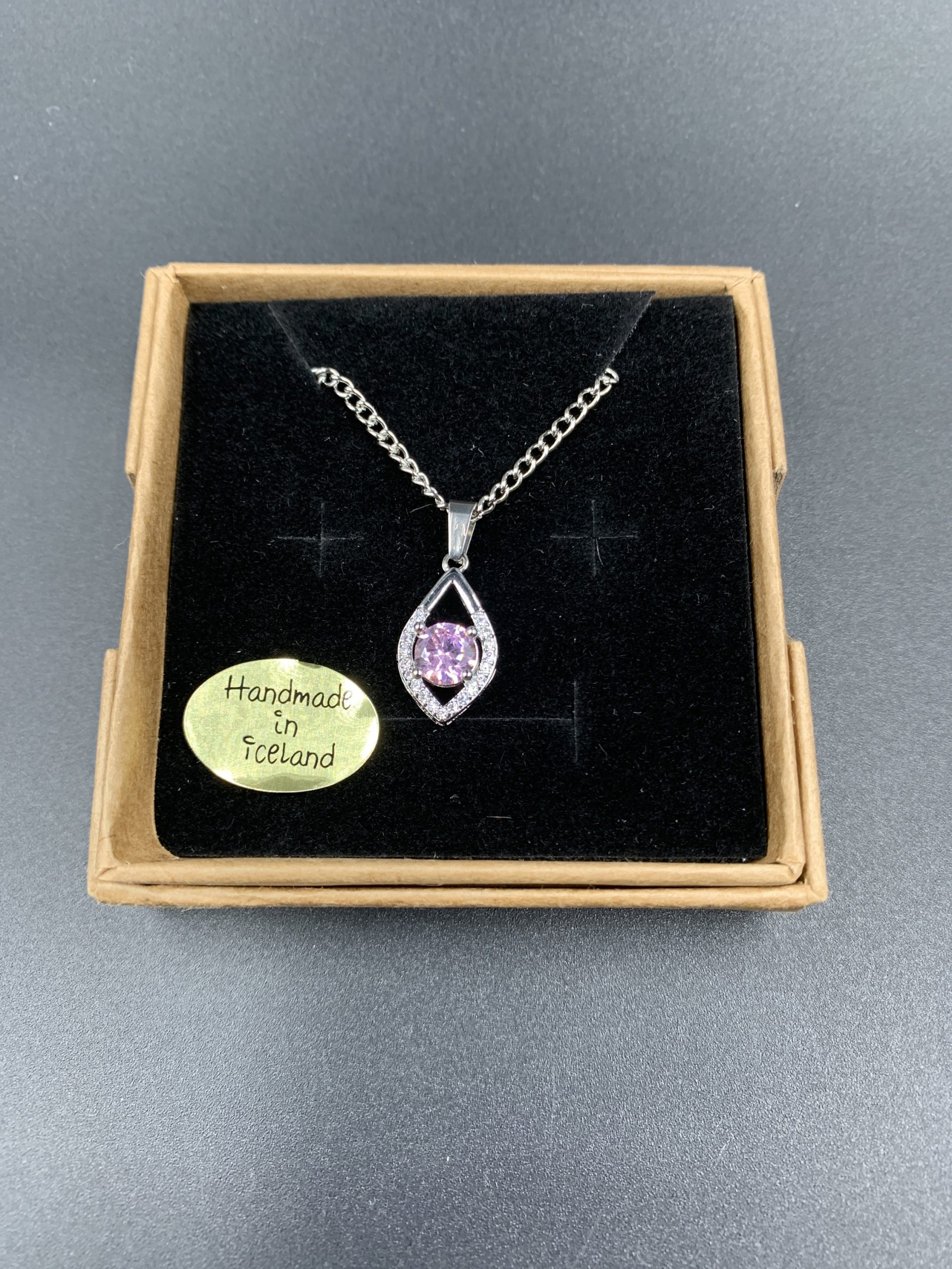Srebrny naszyjnik z różowym kamieniem i kamieniami półszlachetnymi