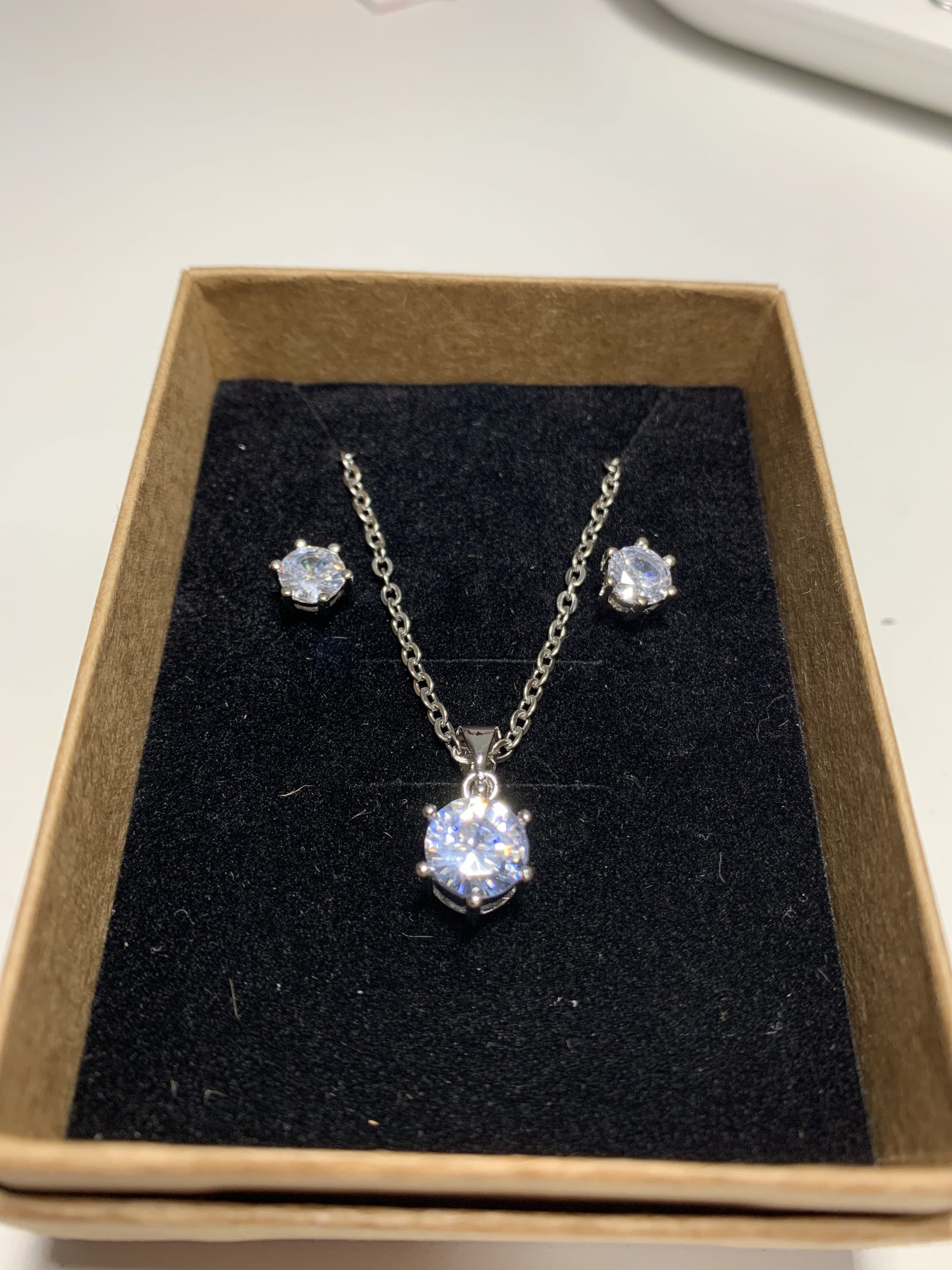 / Srebrny naszyjnik i kolczyki z czarnym kryształem